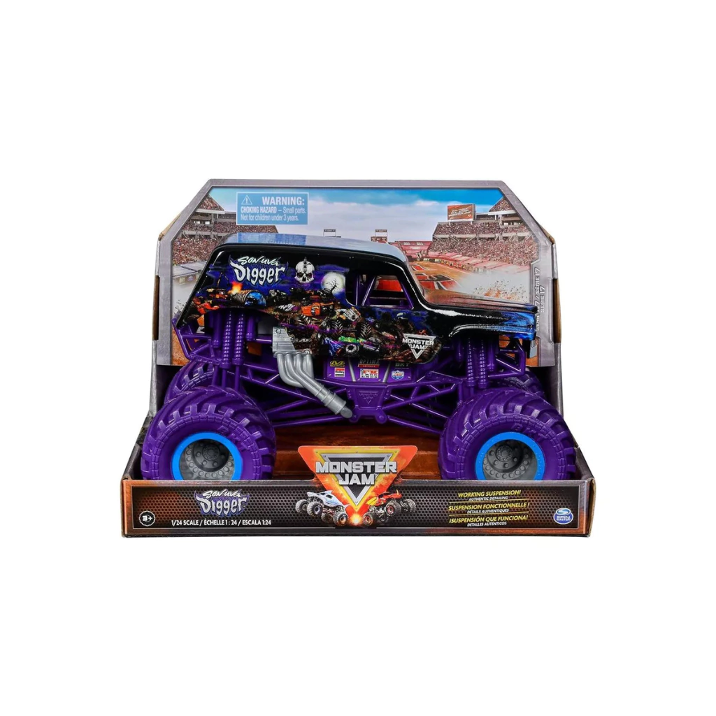 ¡Sumate a la adrenalina de Monster Jam con el Son Uva Digger en escala 1:64! Este camión monstruo oficial trae neumáticos BKT reales, gráficos detallados y una barra con ruedas desmontable para que puedas hacer willies y saltar obstáculos como un verdadero campeón. ¡Acción real y diversión asegurada con Vulcanita!