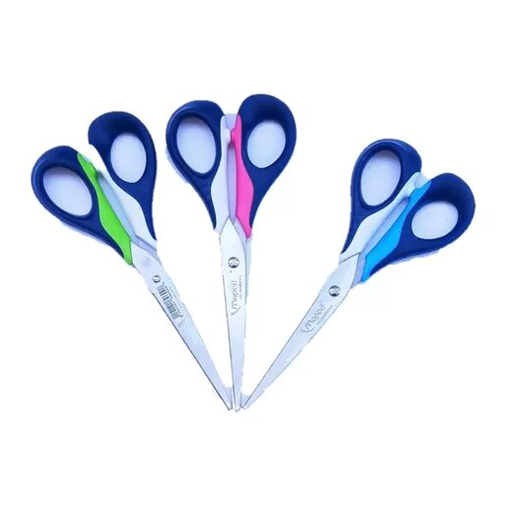 Tijera con anillas compuestas por material blando para facilitar la empuñadura y el confort.